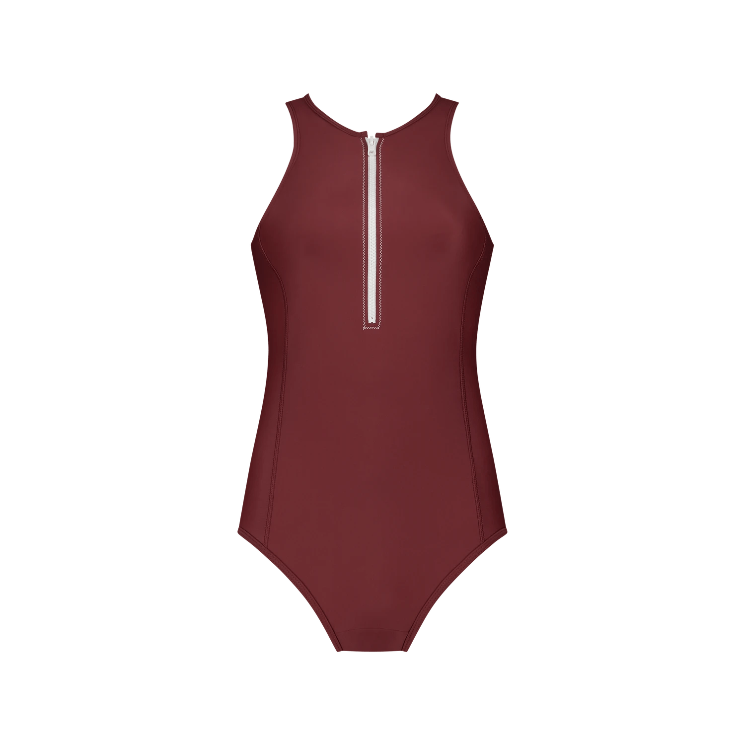 "Really lovely fit on this swimsuit. Gorgeous colour and love the zip feature (very flattering for the cleavage!). Perfect for my ocean swims and walking up the beach afterwards!"