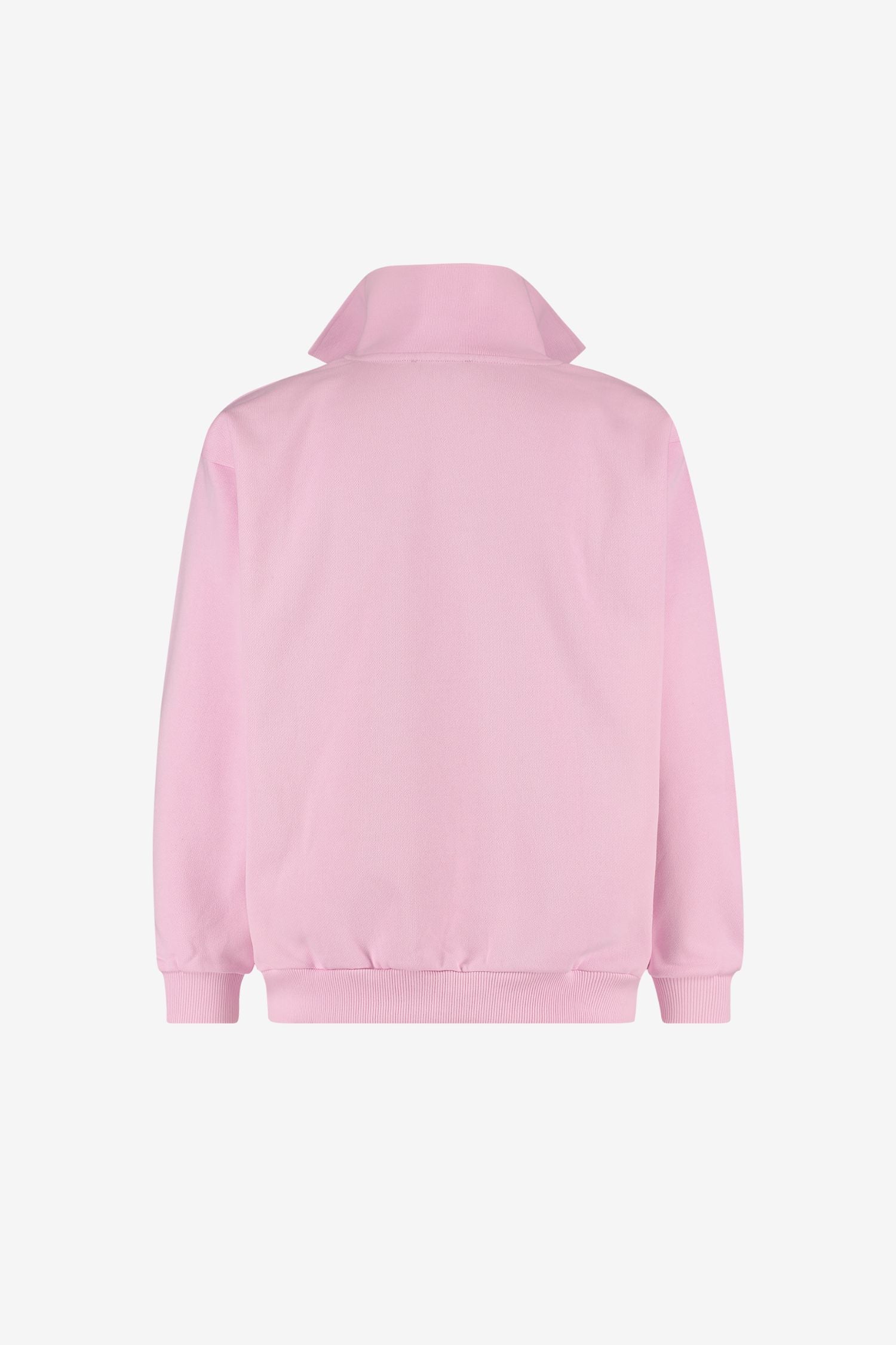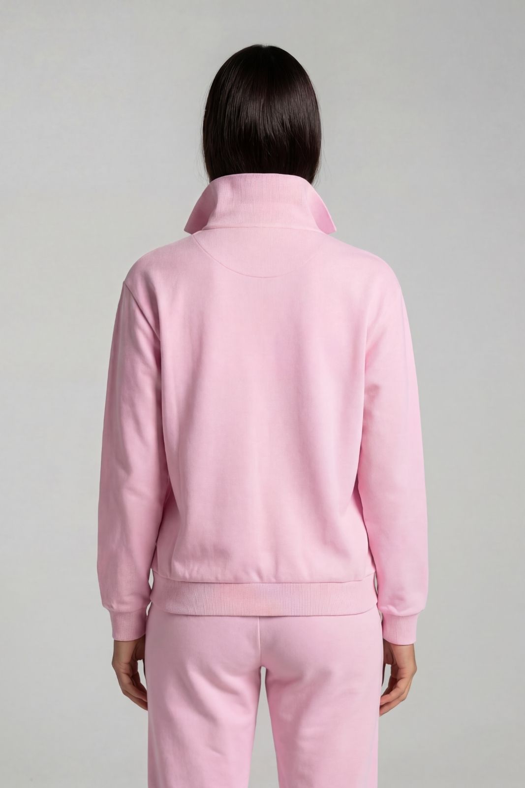 Soft organic cotton jersey with a structured stand-up collar and removable shoulder pads, so you can switch between a structured or relaxed fit. Ribbed hem and cuffs hold their shape after repeated wear. Brushed interior lining for warmth on cooler mornings. Pair with the Pink Sweatpants for a coordinated post-session set.