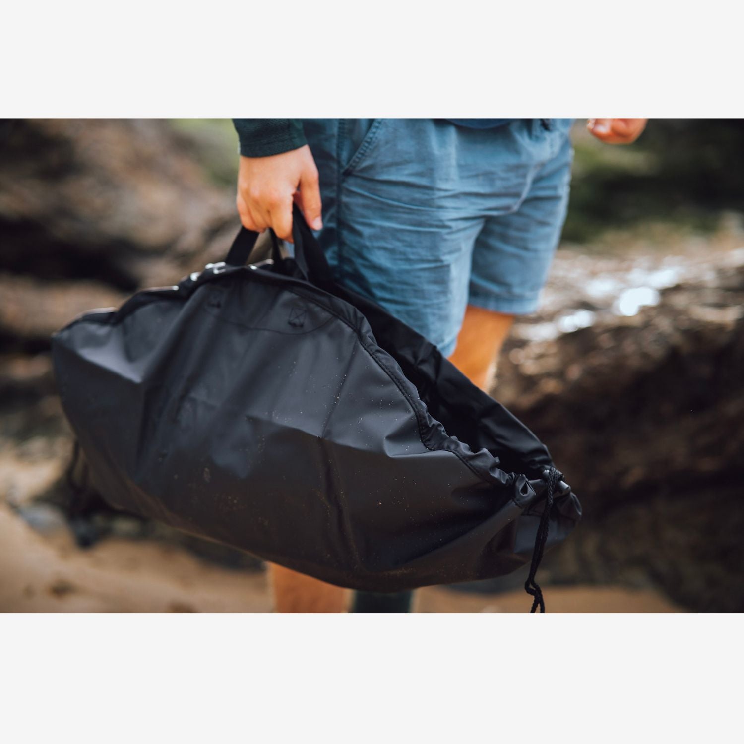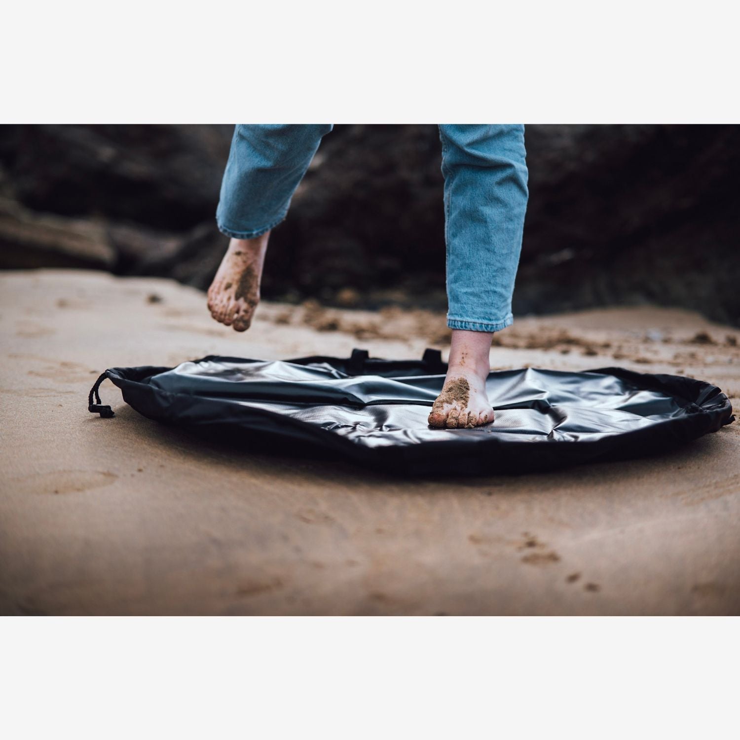 This tough waterproof bag folds out into a flat 1m diameter changing mat for you to stand on whilst getting changed. It's perfect for use in car parks or at the beach when getting out of your wetsuits. Just throw all the wet gear into the bag, pull up the drawstrings, and it's packed neatly away. The material is fully waterproof and very heavy-duty, so can be washed down and won't leak if a wetsuit is left inside it.