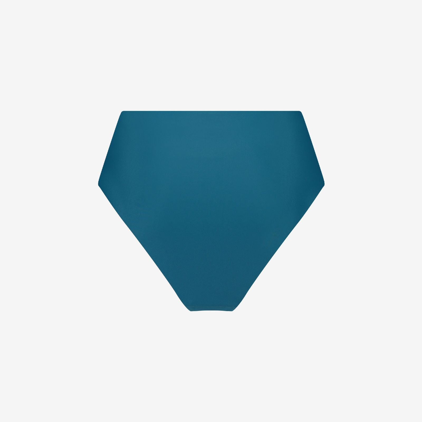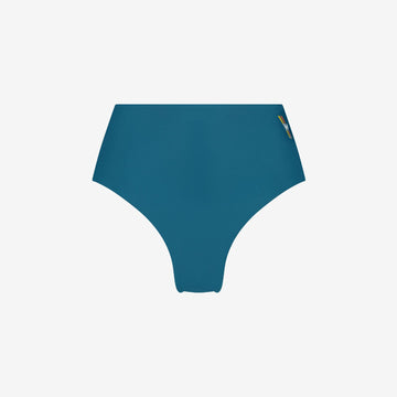Teal high waist reversible bikini bottom with smooth seams and subtle WALLIEN logo on right hip, on a white background