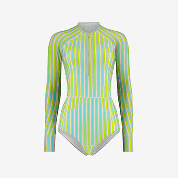 One Piece Swimsuit Longsleeve - Multi Color Stripe
